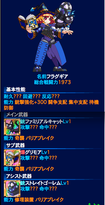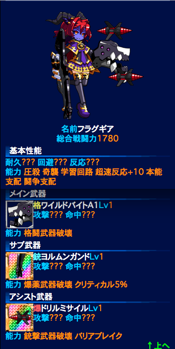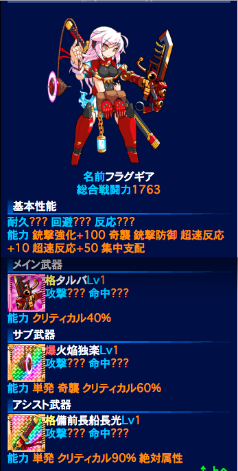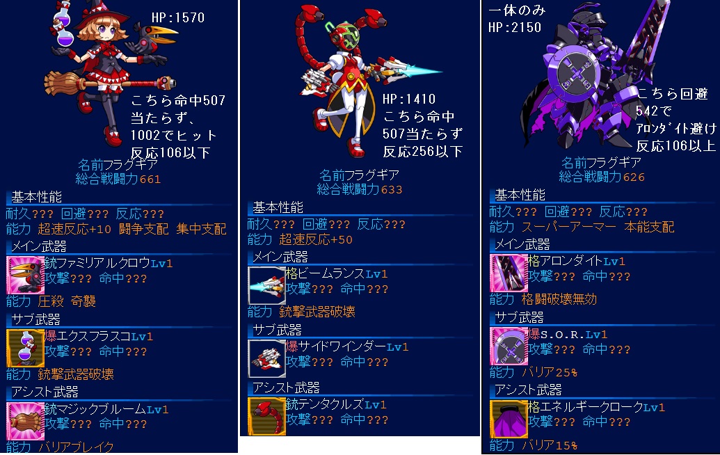 ステージ9回避1000、命中1100+300ファントムクロー、圧殺銃で3機とも行けそうな気がします。