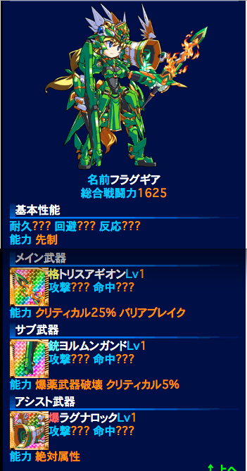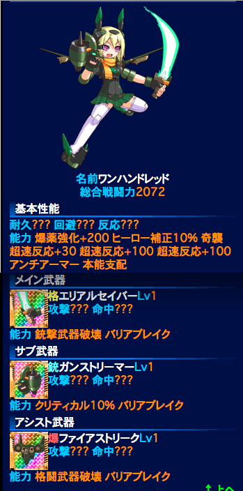 にじよめ版の総合戦闘力は不明ですがNo.100以外の残りの機体パーツ情報