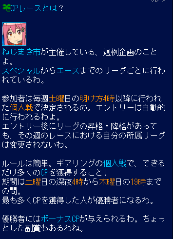 ヘルプの「CPレースとは」を見れば解決すると思います