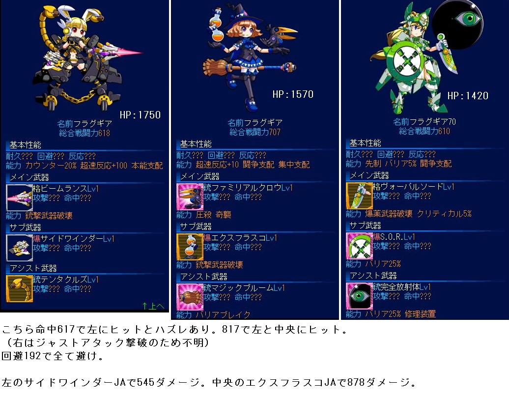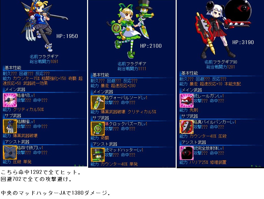 ステージ7,8辺りは命中値の要求が高めで毎度苦戦してます。