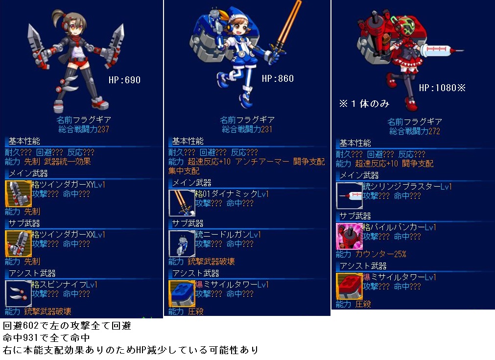 No.90、回避660では被弾、回避850で回避成功。