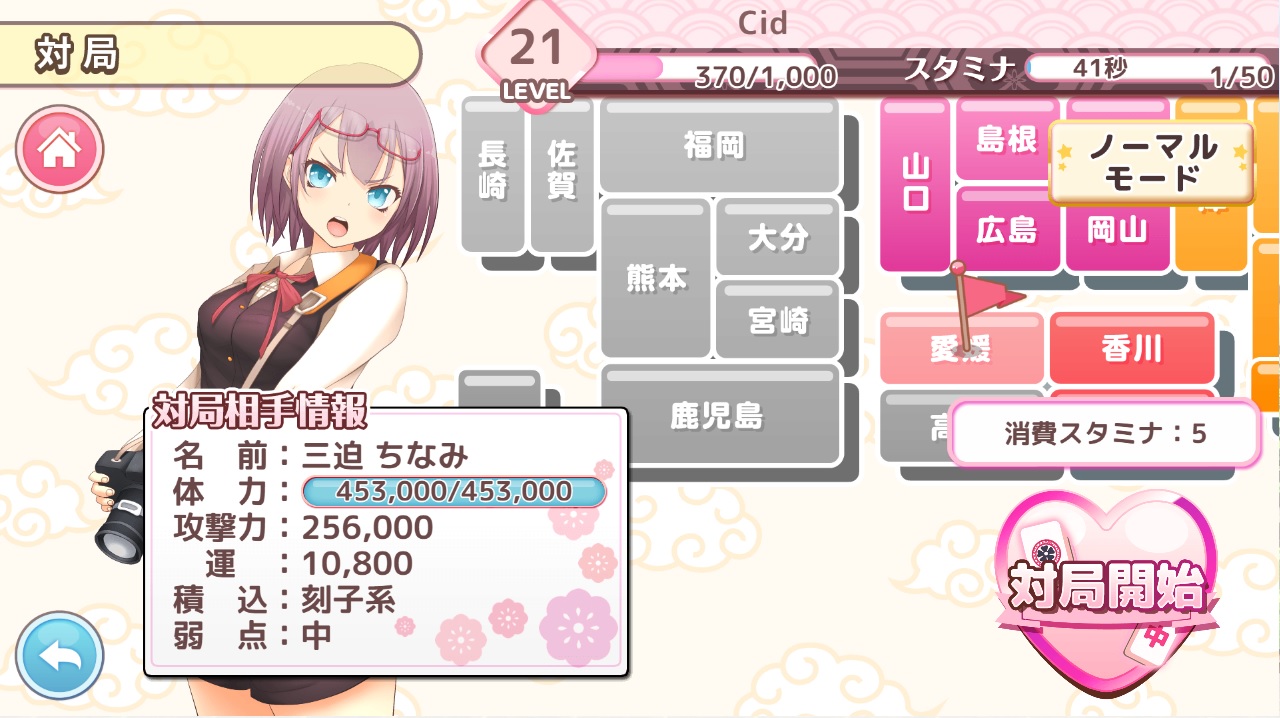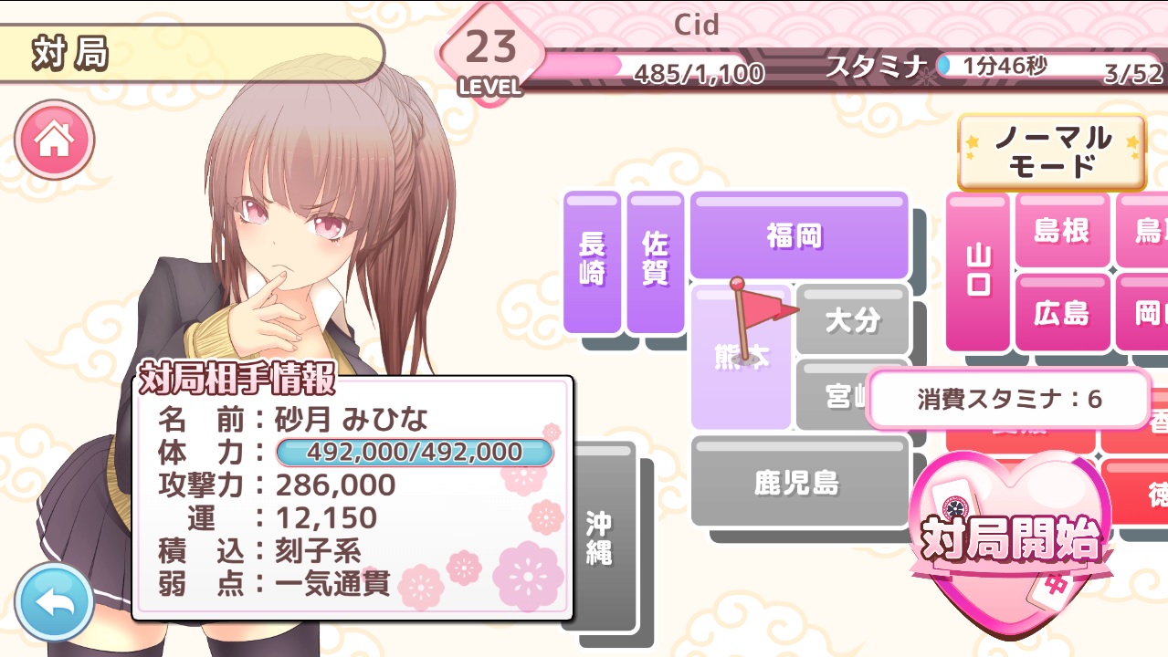 こちらの配牌傾向を嘲笑うかのように的確に片寄るツモ牌、「リャンシャンくらいだし出るだろ」と6面くらいで待っていても針の穴を通すかのように目当ての牌は出ず、ふと正面を見ればさっさとリーチを決め込む相手CPU。序盤に2面待ち残数8枚のリーチですら下手をすると1枚も見ないまま良くて流局、悪ければ相手に和了されたあげく1枚も見えない事すらザラ。パラメータ説明にある『【運】欲しい牌が来やすくなる(意訳)』がまるで役に立たず、配牌を崩さなければテンパイに持っていくことすら難しい局が幾度となく繰り返される…… 相手は謎のカラテンでもって強引どころではない和了を繰り返し、仮にリーチのみ/メンゼンのみであったとしても攻撃力だけでこちらの体力は吹き飛ばされ、本来なら風属性であるハズだというのに謎の技術でもって自身の属性を火に切り替える。キャラは多くとも課金前提で期間限定が跳梁跋扈し、低ランクの娘がレベルアップを重ねればランクアップで上位レアリティに昇格できるなんて事も無く、連続するイベントの報酬はショボく稼働人口少なさから枠縮小され更にしょっぱさが加速……