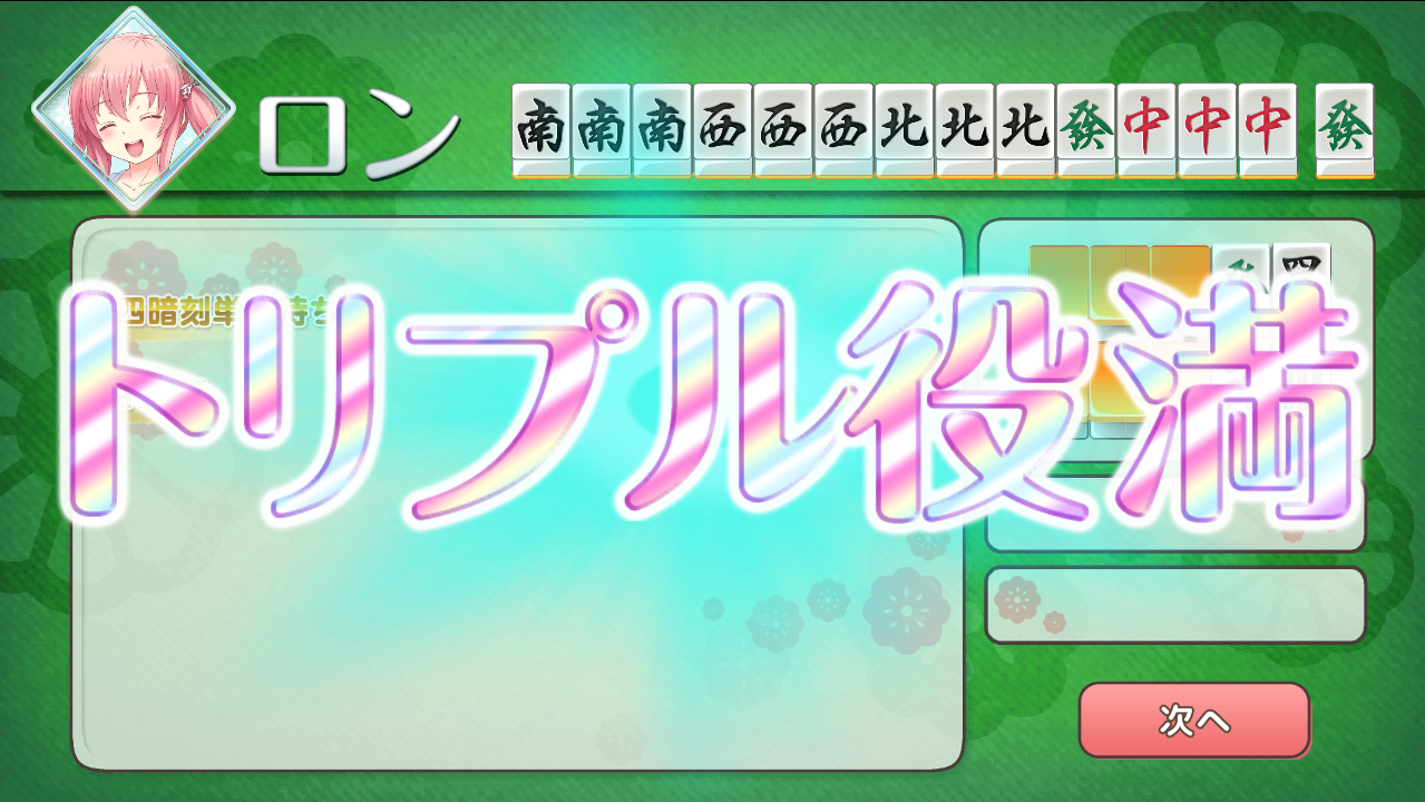 ロン和了なので三暗刻は適用外、でも不利バグの影響で稼げなかった分の補填と考えればまあまあ…… なるたけ早く安定してほしいものです。