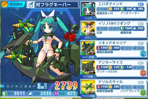 廃工場イベント中、海の季節なのでありきたりながら水着をニパ子に着せてみました。色を統一出来て満足。
