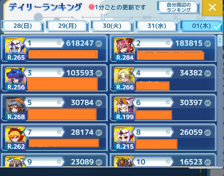 何故なら回復したAPを週間レースにぶっぱして100位内に滑り込みセーフ出来るからです。 -
