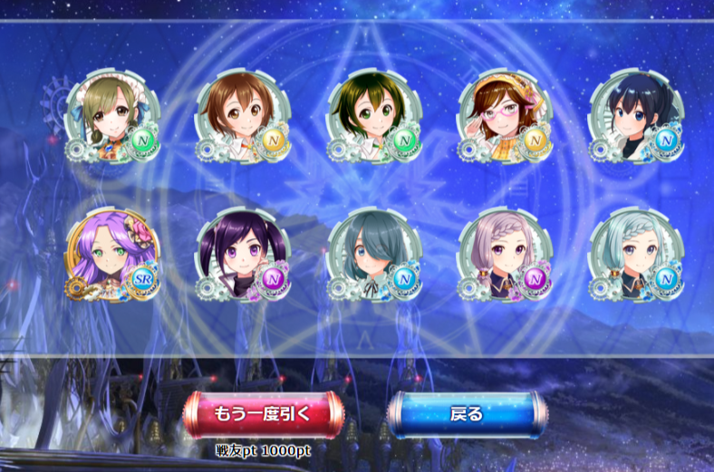 自分もSSRでなかった。それどころかキープキャラが普通に初期キャラの一人、トドメに事前登録の石で回しても全てR・・・