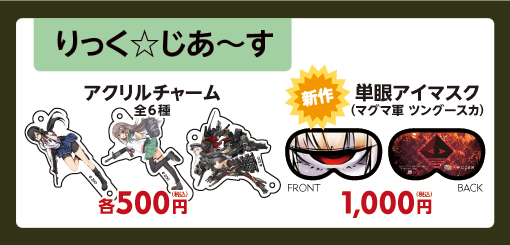 はたらけワークキャップ、ラバーストラップ3種、みてるぞアイマスク、じゃぶじゃぶ湯呑み、ステッカーも引き続き販売しているのでお忘れなく!ラバーストラップは3つセットでお買い得!