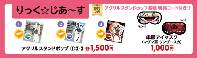 今回はレジ打ち農奴の耐久テストを兼ねて、数えるのも面倒で実際数えてないから何品目あるか分からないがとにかく無数のグッズを持っていくぞ。その割に新作は1種類しか無いからすでに持ってるグッズをうっかり二個三個とリピートする羽目になると思うが頑張ってくれ。